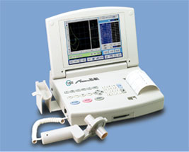 スパイロメータという器具を使い、肺年齢が調べられます。